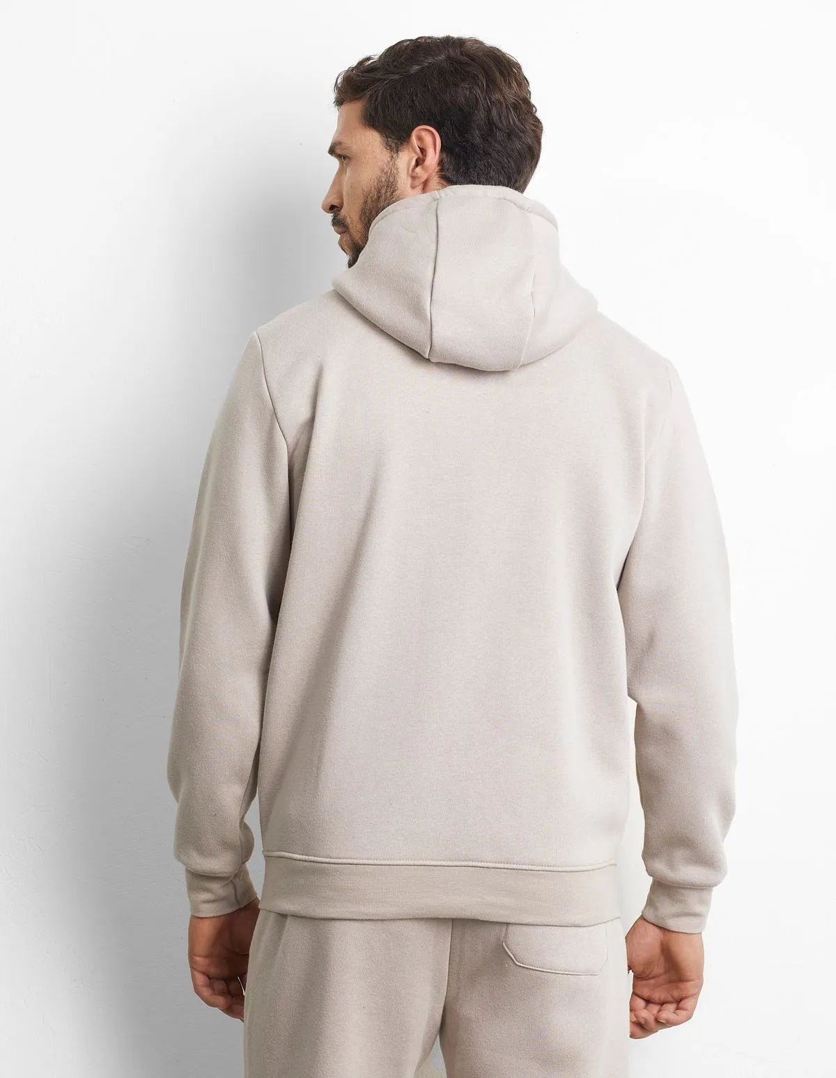 Long-sleeved hoodie. Perfect for both men and women. Adjustable hood and high collar, ideal to protect yourself from the cold. Comfortable cuffs on the sleeves and practical zip closure. Two versatile colors: black and sand. Comfortable and soft fit. Made in brushed fleece.