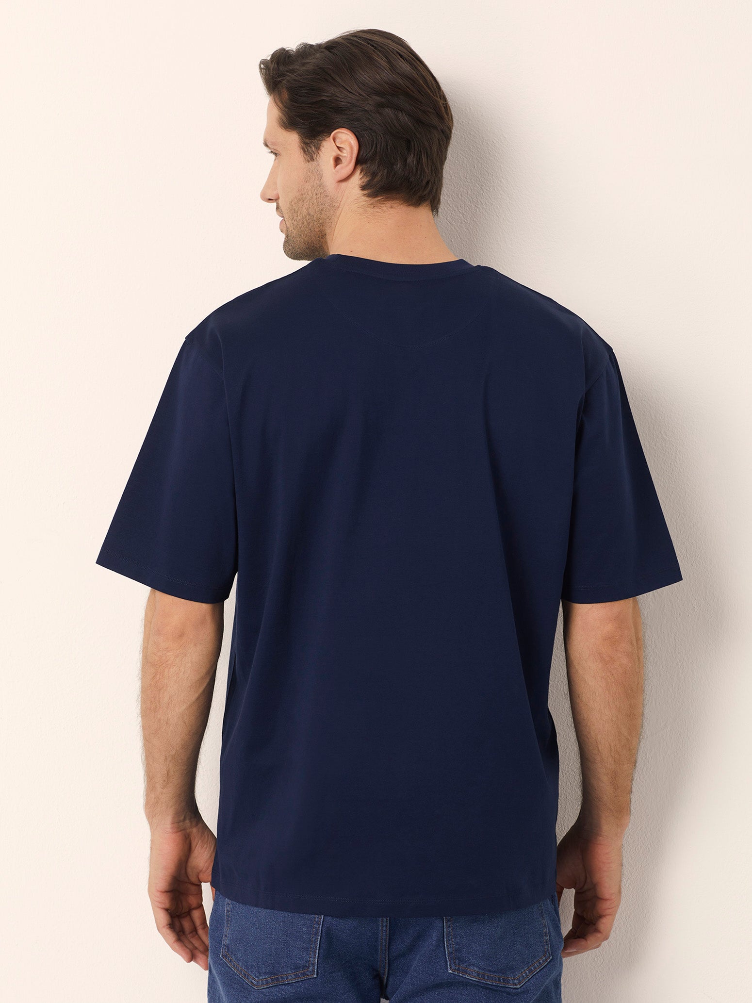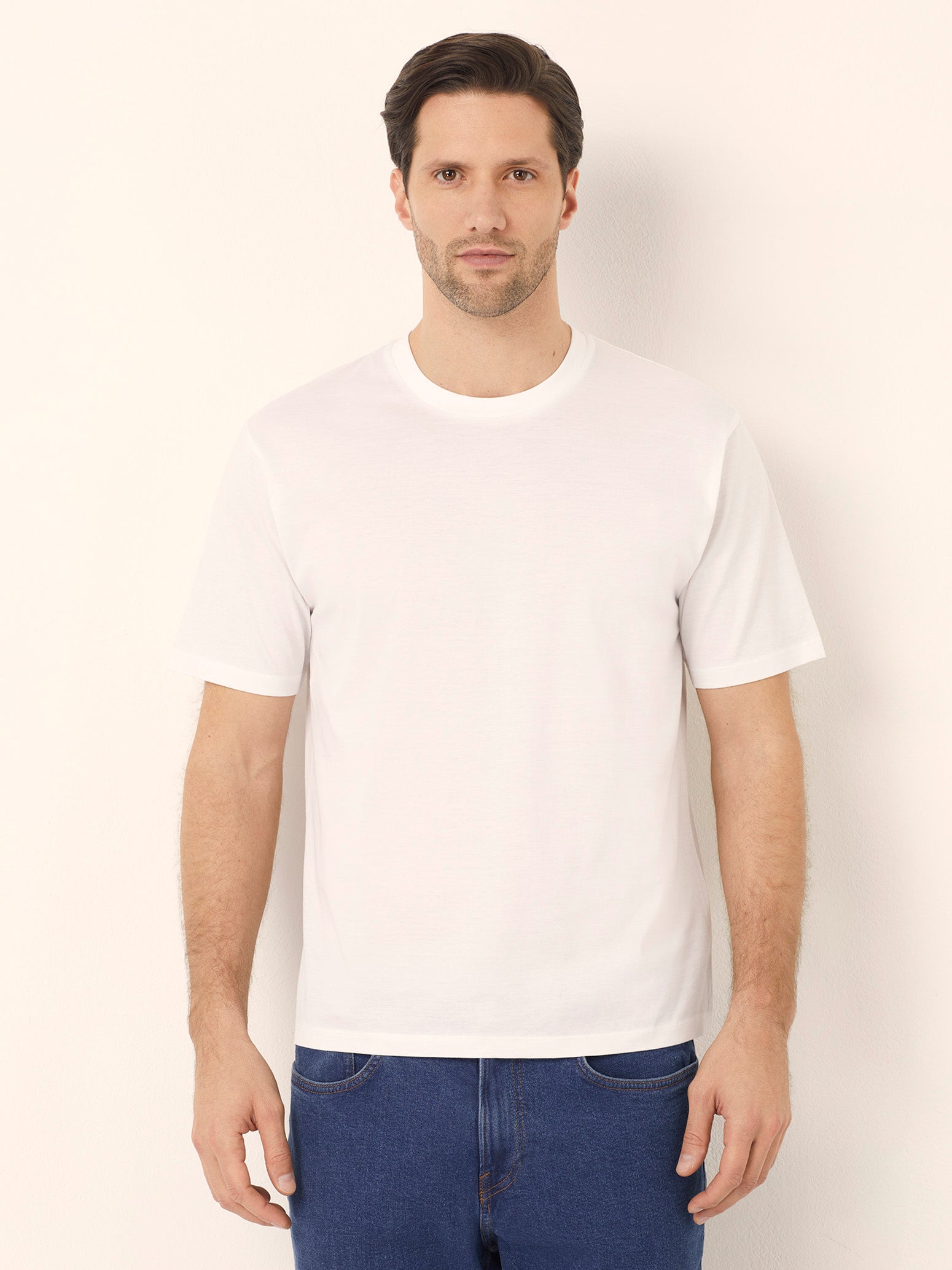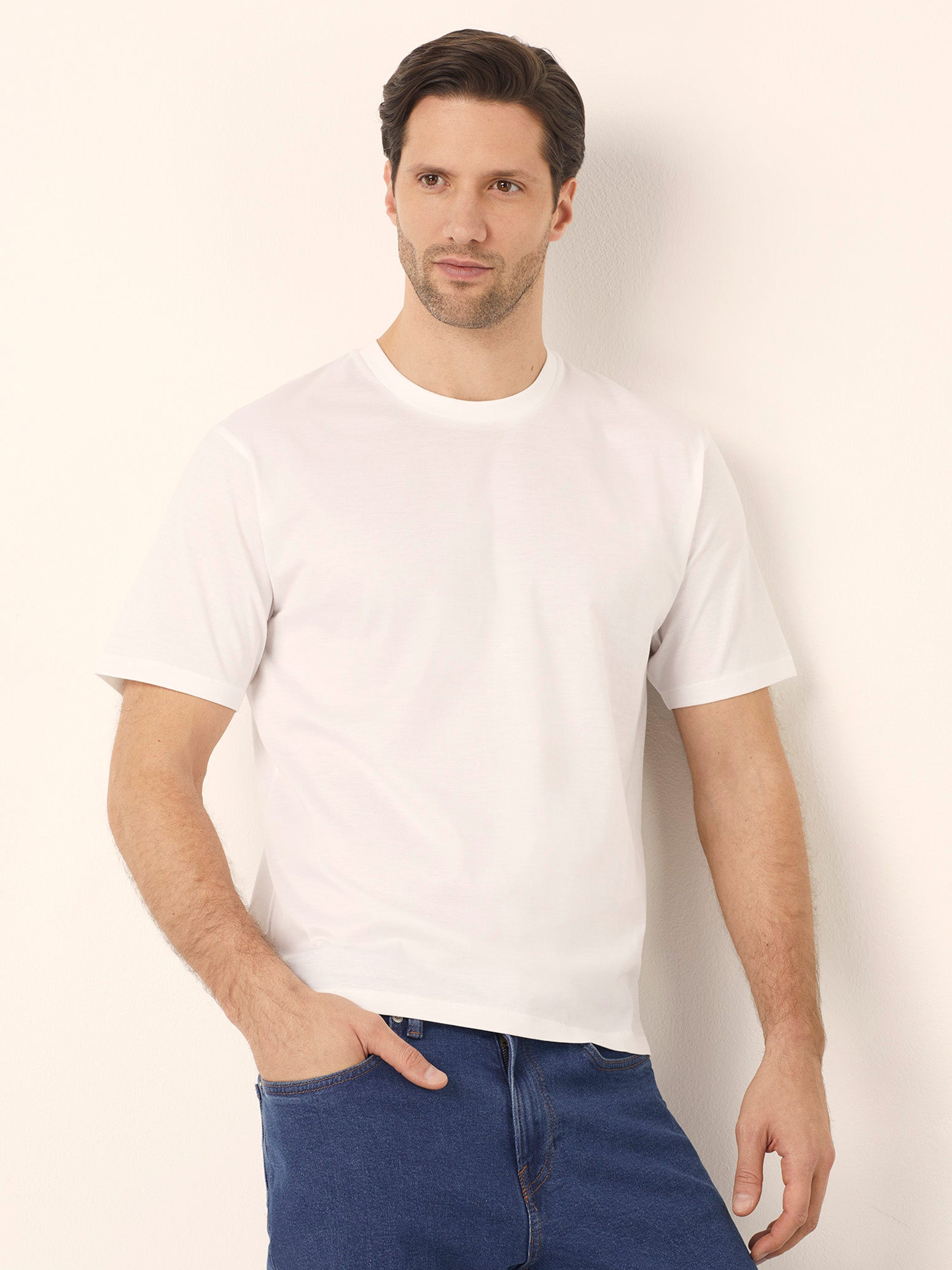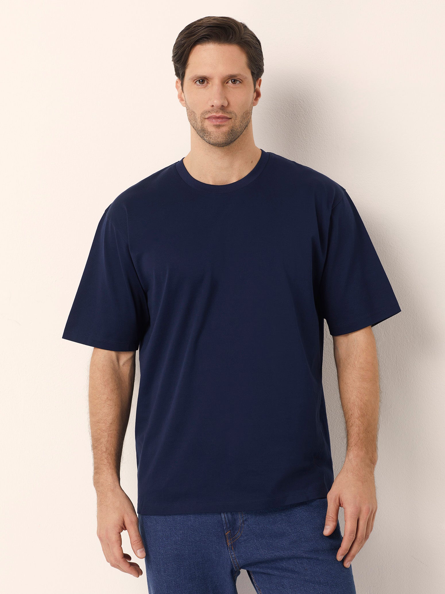 Men's Premium Cotton T-shirt in cotton jersey, crew-neck model. Solid color, available in three classic shades: black, blue, and white, with a regular fit