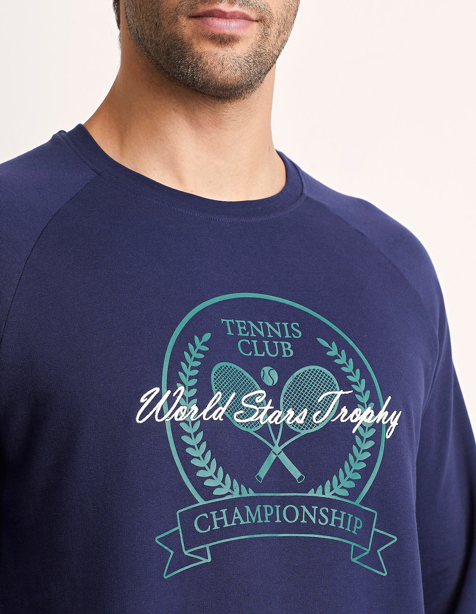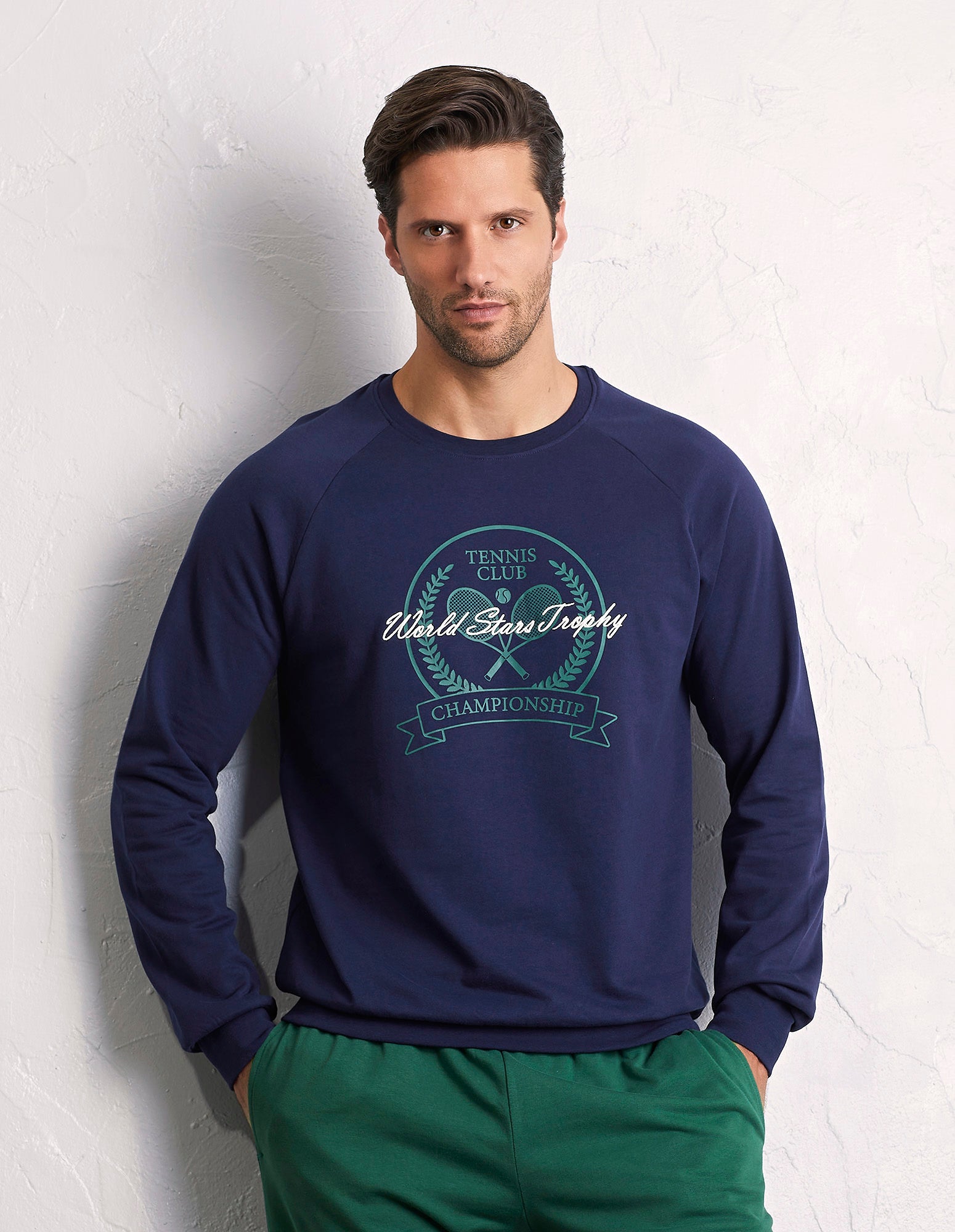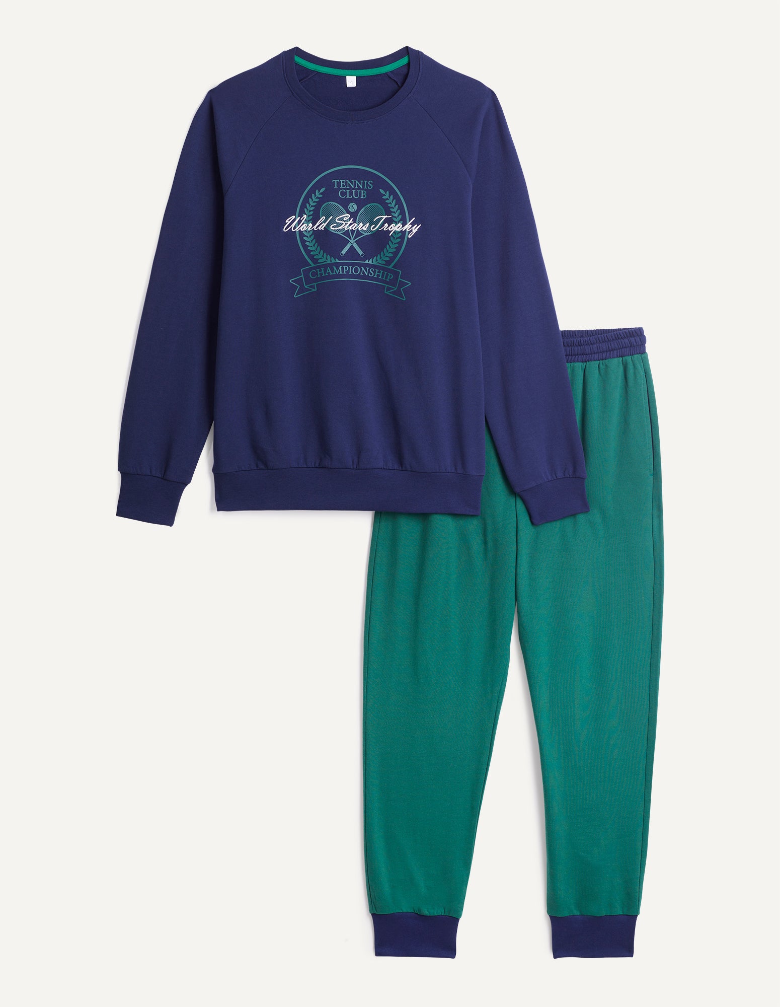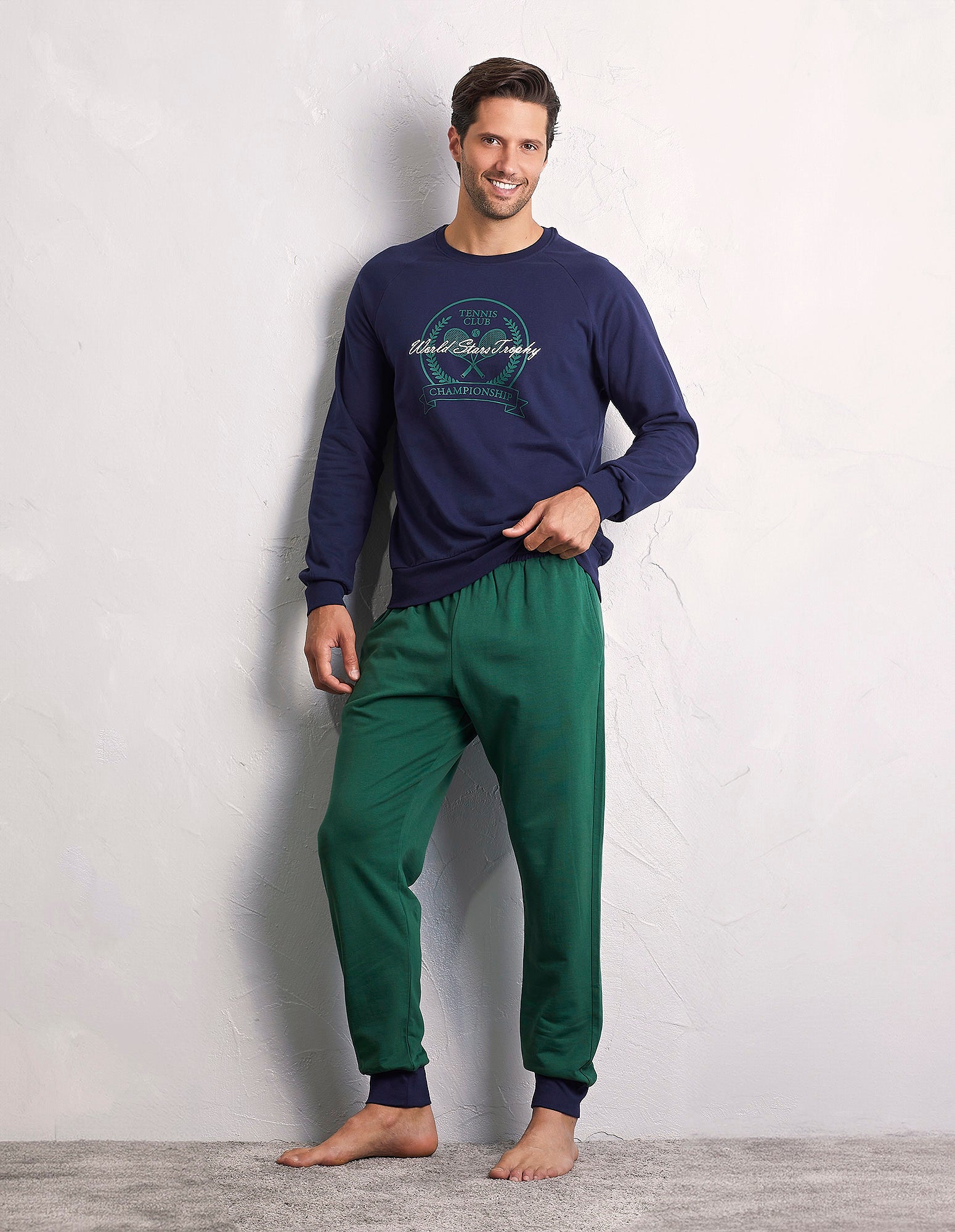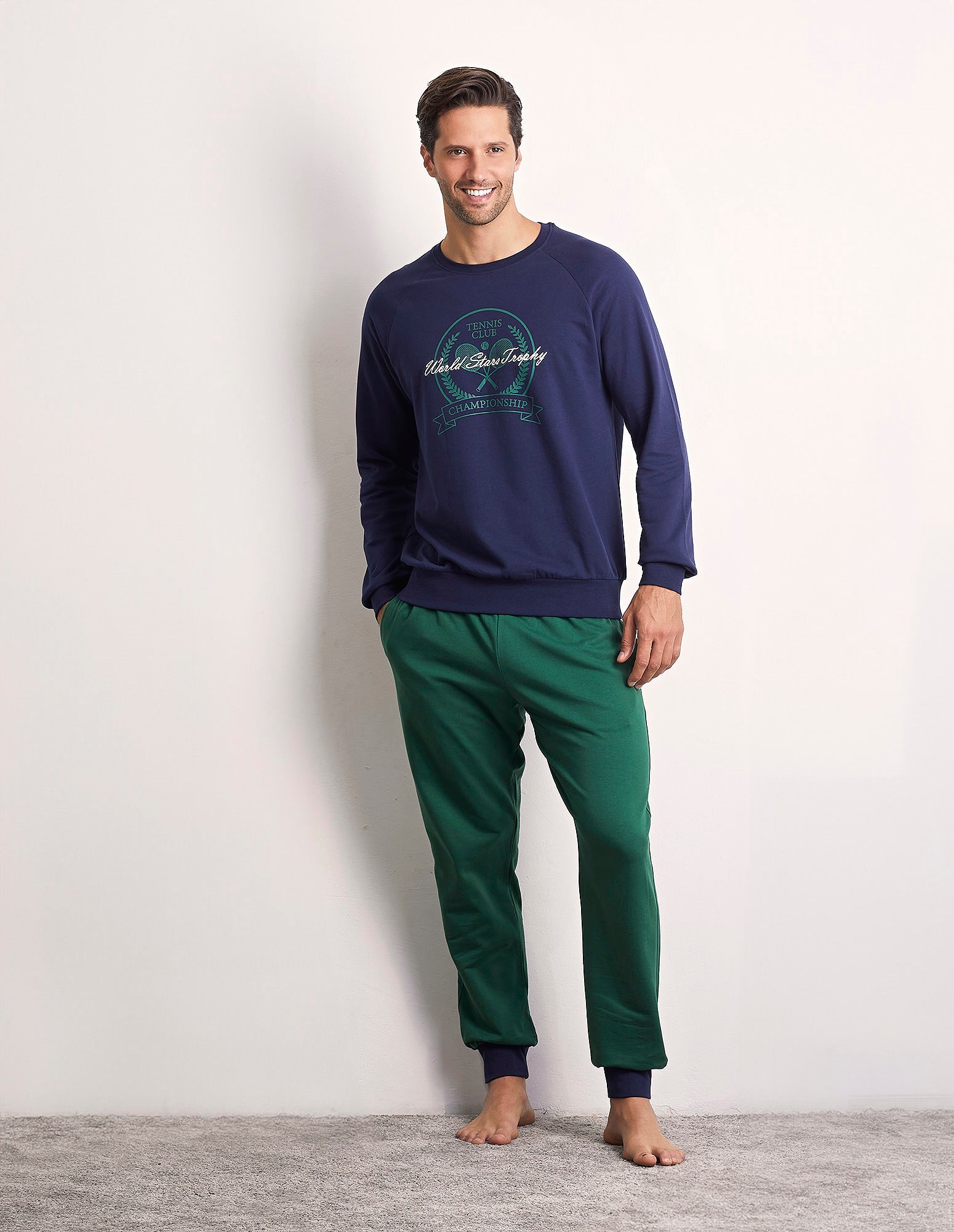 Elevate your style and add a touch of elegance with the men’s pyjamas from the Tennis Club line. Give yourself a night full of dreams and freedom and do it wearing this beautiful pajamas. Made of brushed fleece, it keeps you warm and makes you feel pampered during sleep. The sleek night blue colour of the shirt matches perfectly with the modern green of the trousers. The elastic waistband and cuffs on the ankles ensure a great fit and unique comfort. The ideal pajamas for tennis lovers but not only! Add a quality and super fashionable garment to your wardrobe.