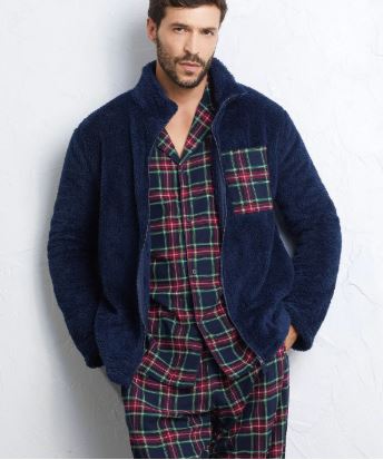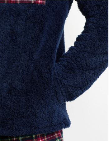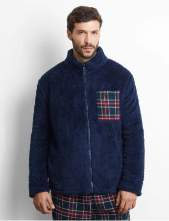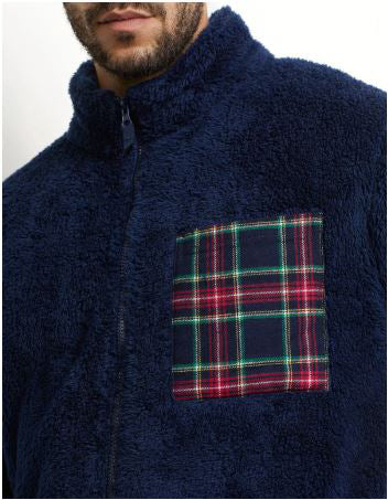 Home Jacket in warm and soft faux fur. Comfortable and practical zip closure. High collar perfect for ensuring all the warmth you need. Two large side pockets and one front pocket with tartan print.