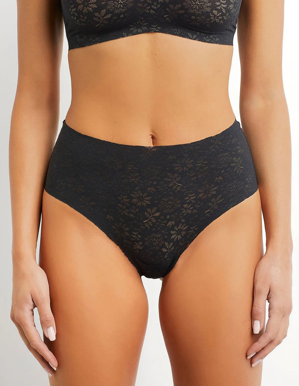 This high waist brief of the iconic Principessa Lace line ensure comfort and practicality. Made of high quality all-over lace promises to be breathable and invisible under clothes. Thanks to its raw, seamless cut, it will be as if you were not wearing it. Its floral texture adds that touch of elegance and femininity. Add a light and quality garment to your underwear collection. For a unique total look, pair it with the bralette from the same series.