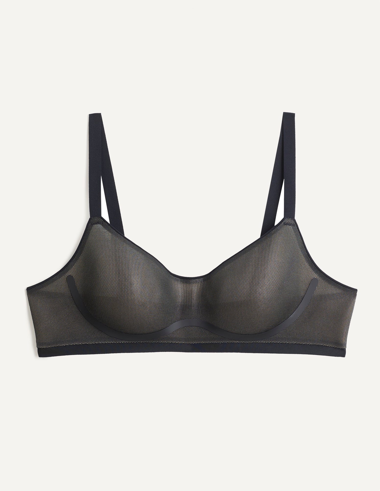 Innovative bralette New Space, in lightweight, breathable and three-dimensional 3D spacer fabric, with preformed modeling, for better breast support without padding on the cups. No underwire, with thin and ultra-flat underbust band, for reinforcement, comfort and discretion. Crossable straps on the back and adjustable.