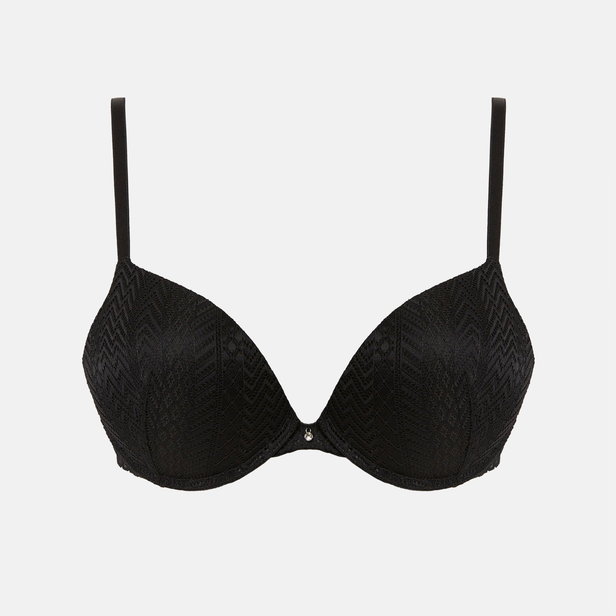 sleekness and simplicity combine to create a push up bra that lifts in the most flattering fit. featuring a delicate jeweled detail in the midline for a touch of girlishness.