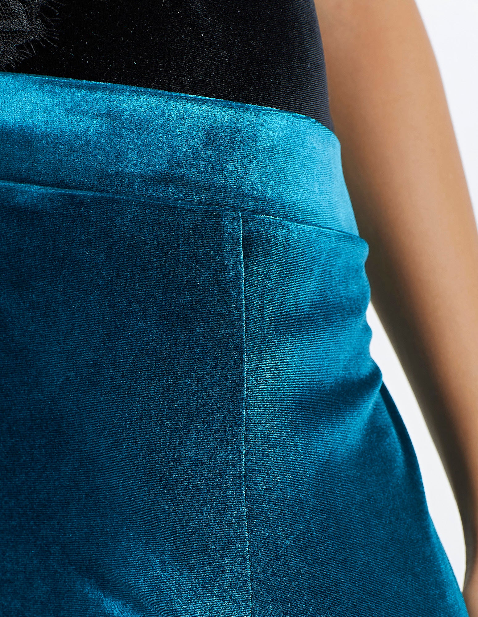 Pants in soft and warm velvet. Wide cut that falls gently on the body. Comfortable and practical elastic waistband. Regular fit. Two elegant color tones: lagoon blue and black.