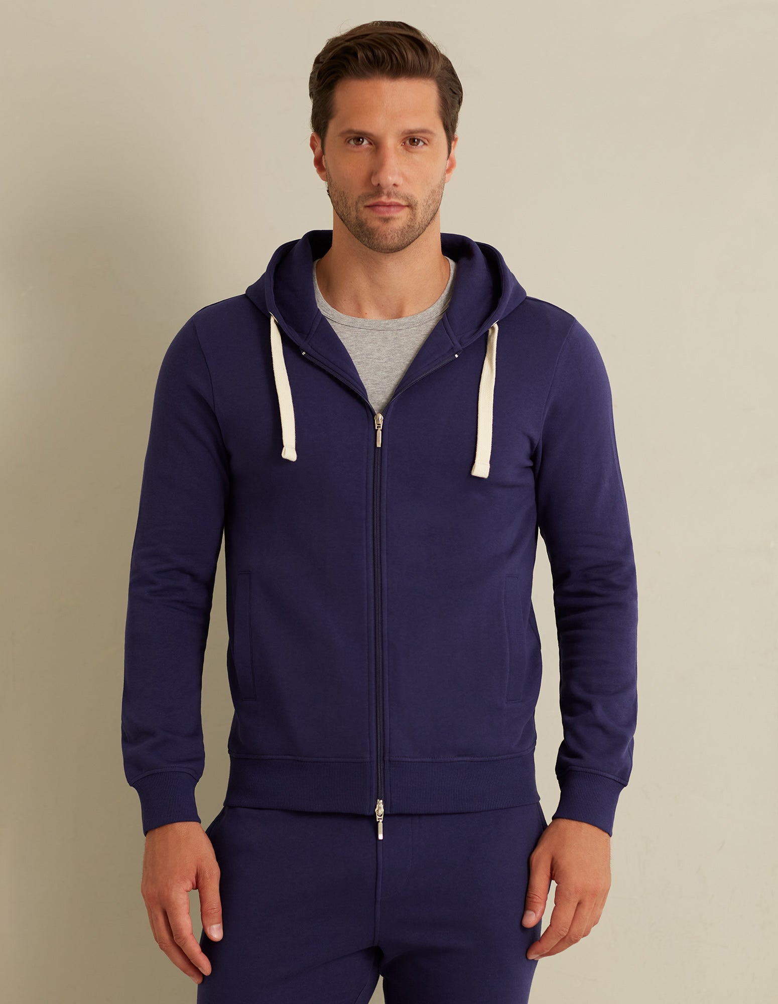 choose comfort and style with easy living by yamamay. informal garments for free time, transversal and combinable in different colours, made of brushed fleece fabric, for the first cold weather and the transition to the autumn season. with this hooded sweatshirt, with practical zip and side pockets, you will have the most classic of casual garments, for relaxing days but also to cover yourself before and after sporting activity. the model is 1.90 m tall, has a 102 chest, 80 waist and wears size l.